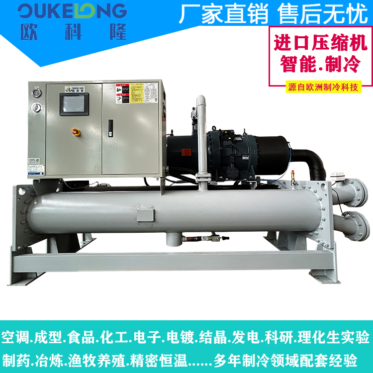 歐科隆制冷150HP水冷螺桿式冷水機是工業制冷領域的旗艦產品,專為超大規模生產和高精度工藝冷卻需求設計。該機型采用創新三級壓縮技術,實現150匹(約450kW)制冷量,為新能源、半導體等行業提供革命性溫控解決方案。