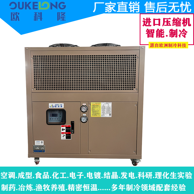 深圳歐科隆制冷自主設(shè)計(jì)研發(fā)生產(chǎn)的15HP風(fēng)冷式冷水機(jī)是一款中高功率工業(yè)制冷設(shè)備,專為中型生產(chǎn)線和集中冷卻需求設(shè)計(jì)。該機(jī)型采用高效風(fēng)冷散熱技術(shù),免除冷卻塔配置,兼具大冷量輸出與便捷安裝特性,是制造業(yè)升級(jí)的理想溫控解決方案。